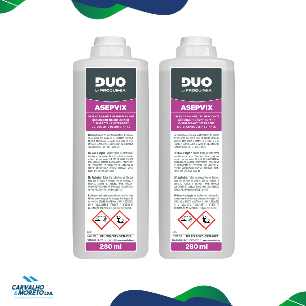 Início / ECODUO – Uma solução ecológica que vai consigo! / DUO ASEPVIX- Detergente e desinfetante p/superfícies alimentares- Caixa 2 x 280mL DUO ASEPVIX- Detergente e desinfetante p/superfícies alimentares- Caixa 2 x 280mLConsulte-nos REF: 1064301 Categoria: ECODUO – Uma solução ecológica que vai consigo! Descrição Documentação Descrição Detergente desinfetante para a limpeza manual e por espuma de todo o tipo de superfícies em contacto com alimentos. Caixa com 2 recargas de 280mL Ficha Técnica DownloadApresentação/Folheto do Sistema Download Também pode gostar… ECODUO – Uma solução ecológica que vai consigo! Pulverizador ECODUO Produtos Relacionados ECODUO – Uma solução ecológica que vai consigo! DUO BAC – Detergente higienizante concentrado, desodorizante – Caixa 2 x 280mL ECODUO – Uma solução ecológica que vai consigo! ECODUO WIPE – Detergente Multiusos para vidros e outras superfícies – Caixa 2 x 280mL ECODUO – Uma solução ecológica que vai consigo! DUO ANTICAL – Detergente anticalcário, desincrustante e desodoriznte – Caixa 2 x 280mL ECODUO – Uma solução ecológica que vai consigo! ECODUO FORCE – Desengordurante energético – Caixa 2 x 280mL